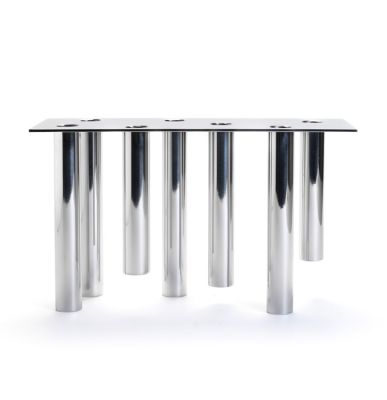 Disegnato da Gio Ponti, questo oggetto rappresenta un connubio tra funzione e sperimentazione formale, inserendosi nel percorso di riscoperta e valorizzazione dei progetti d’archivio del maestro, in collaborazione con i suoi eredi. Quando posizionato con i tubi rivolti verso l’alto, Pompei può assumere il ruolo di candelabro o vaso scultoreo. Capovolgendolo, invece, si trasforma in un elemento decorativo, un centro tavola evocativo che arreda e incuriosisce. La struttura si regge su tre soli punti di appoggio, un dettaglio che suggerisce riferimenti a studi di equilibrio e tensione tipici dell’architettura più audace. L’oggetto, realizzato in metallo lucido, richiama alla memoria suggestioni classiche reinterpretate attraverso lo sguardo moderno e visionario di Ponti. Le sue forme geometriche e rigorose si prestano a molteplici letture, fondendo arte e funzione in un’unica presenza scenica. Pompei non è solo un complemento per la casa, ma una presenza scultorea, capace di dialogare con l’ambiente e raccontare la forza creativa di un design senza tempo.